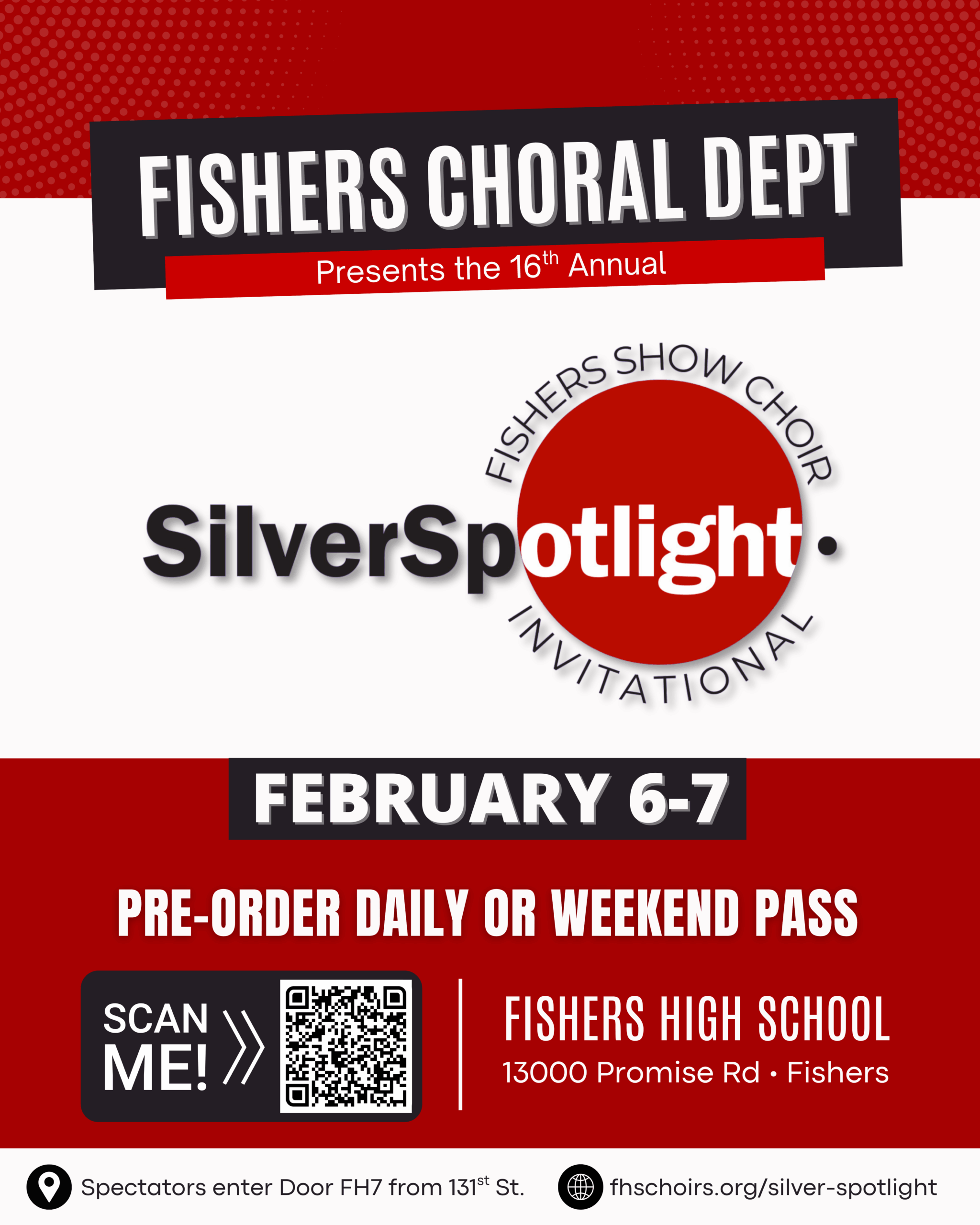 The 16th Annual Silver Spotlight Invitational takes center stage at Fishers High School on February 6 and February 7, 2026. Our first ever two day show choir and concert choir competition event hosted by the Fishers High School Choir and packed with show-stopping competitive performances.